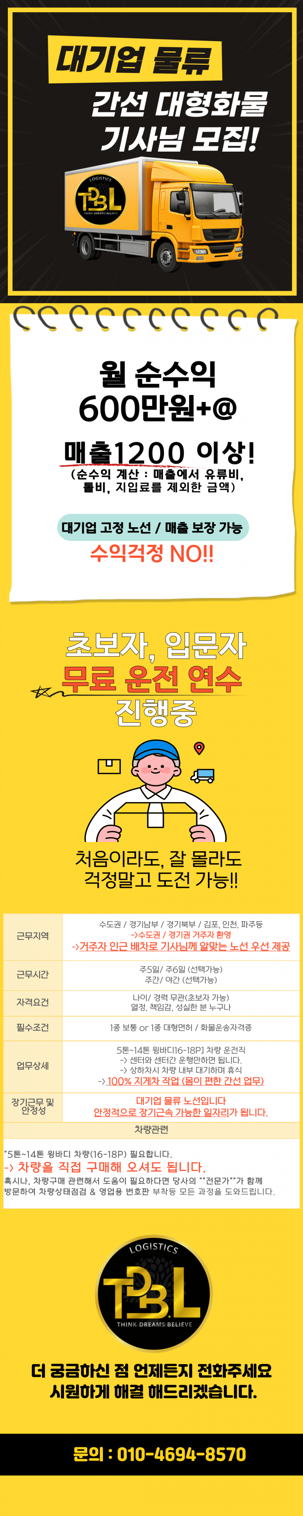 (주) TDB에서 함께 성장할 지입 차주 및 예비 차주님을 모십니다 _ 경기 수도권