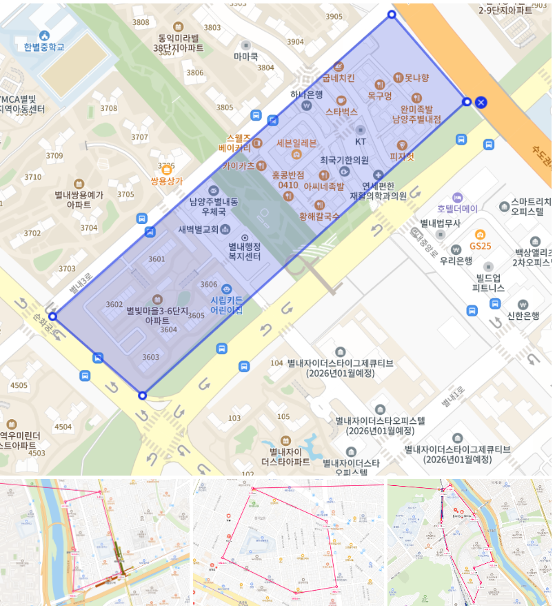 ● 별내 신도시 내 밀집도 좋은 아파트 노선 배정
